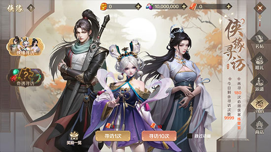 寻访分为“侠缘寻访”与“奇遇寻访”。