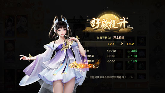 当侠客的好感度等级提升时,其所提供的属性加成也会随之提升!