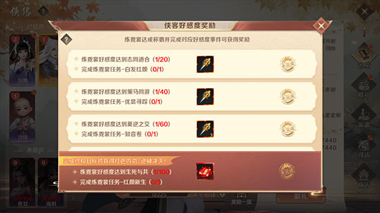 若少侠已结识侠客的好感度等级总和达到一定阶段时,将为你解锁侠缘称谓与丰厚的奖励!