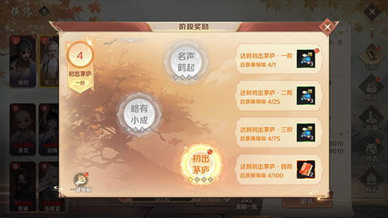 每位侠客的好感度等级在达到20/40/60/80/100时,便会解锁对应的奖励,可点击界面下方的“奖励一览”按钮查看。